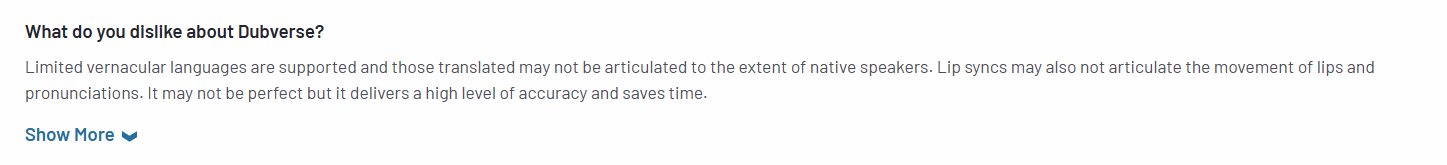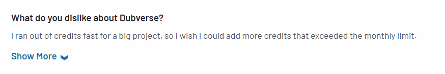 Another recurring complaint about Dubverse is that its platform has not been designed for enterprise-grade usage, due to its limited character counts in dubbing.