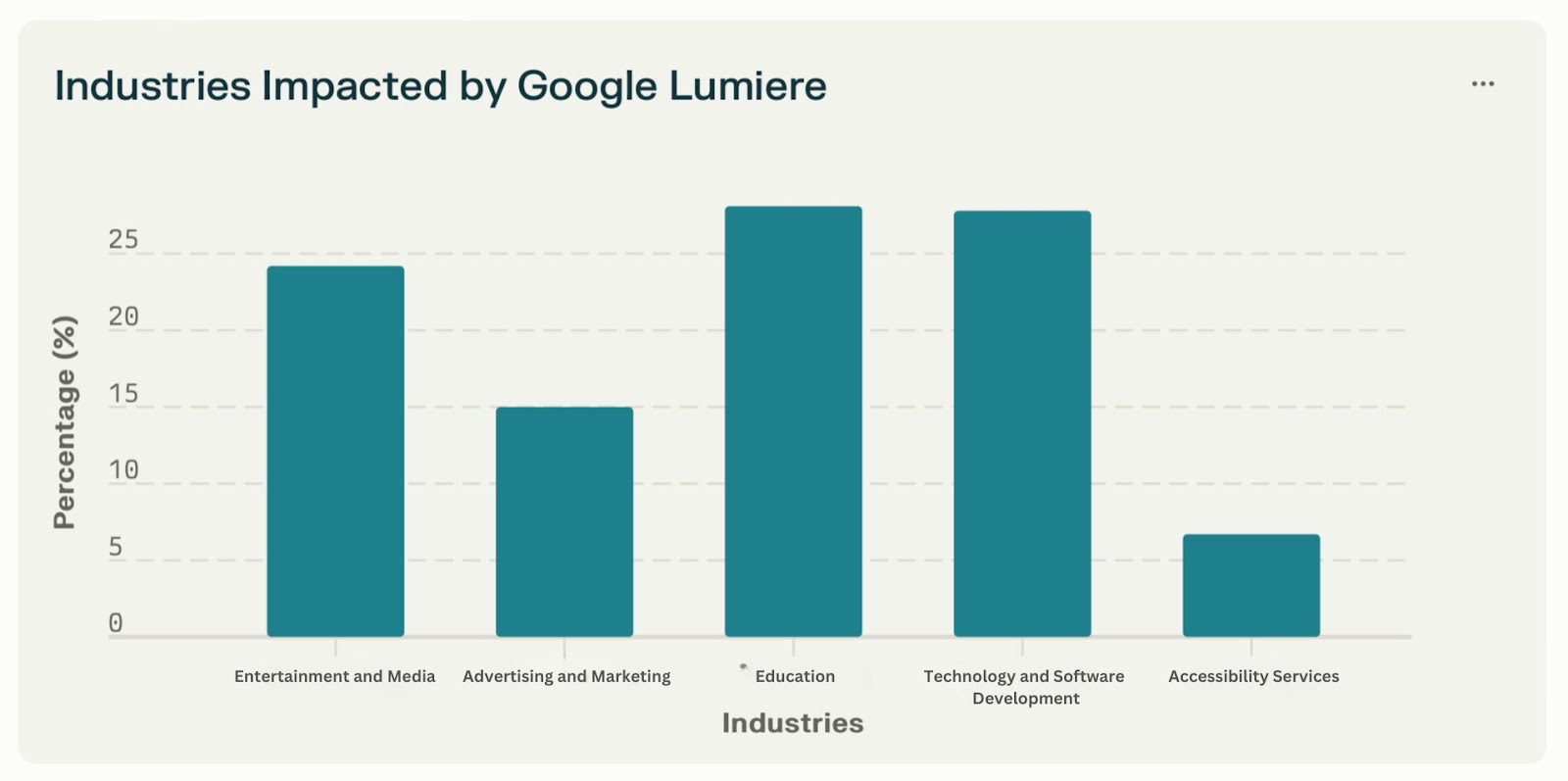 Note: As of January 28, 2025, Lumiere is not yet available for public use, but is expected to integrate with Google's suite of AI tools in the future.Industries Impacted by Google LumiereThe ripple effect of Lumiere's technology extends across various industries. Below are some sectors that stand to benefit significantly: