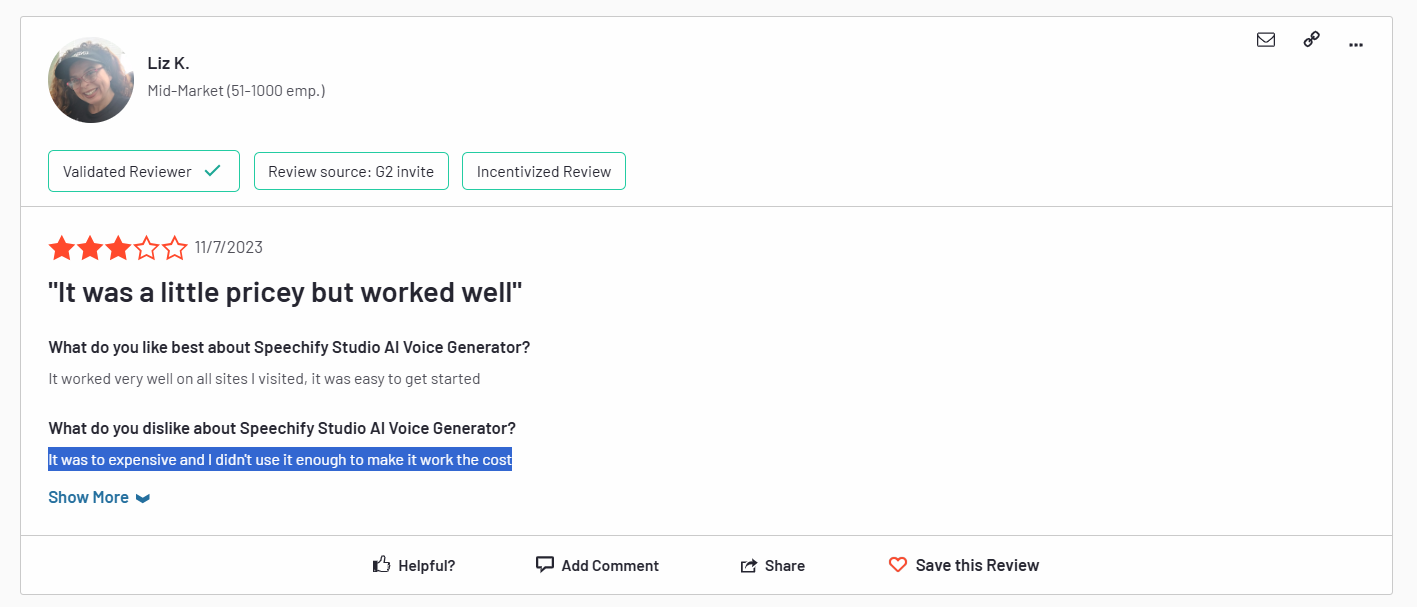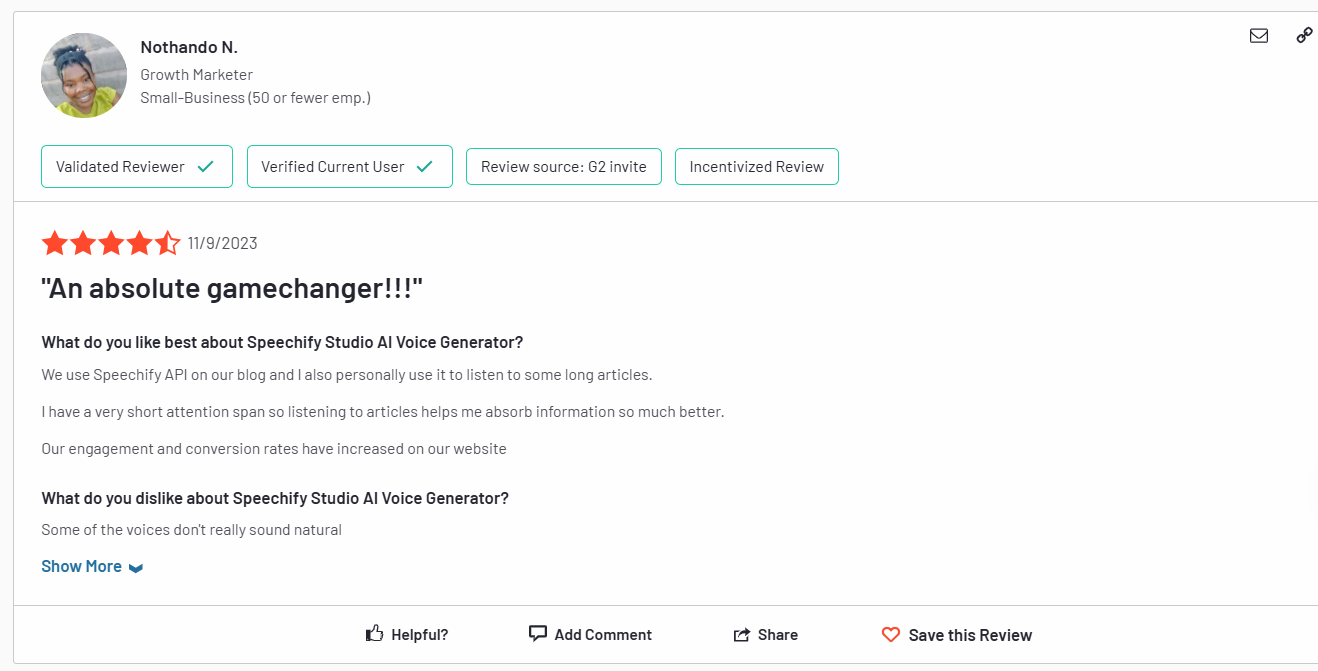 ‘’Some of the voices don't really sound natural.’’ – G2 Review.