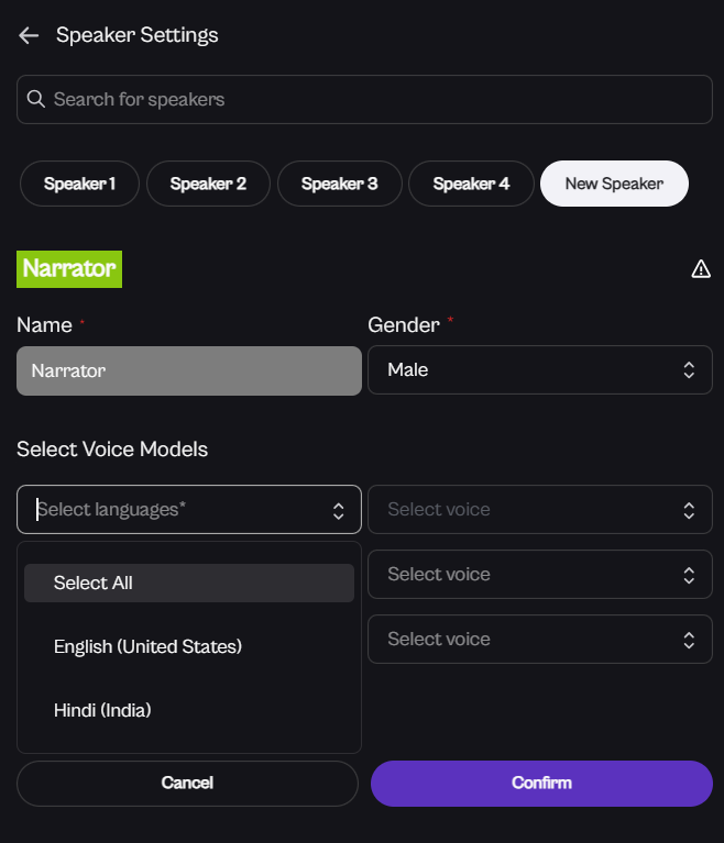 Click Confirm to apply this voice selection across all the languages in your project.
