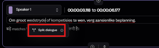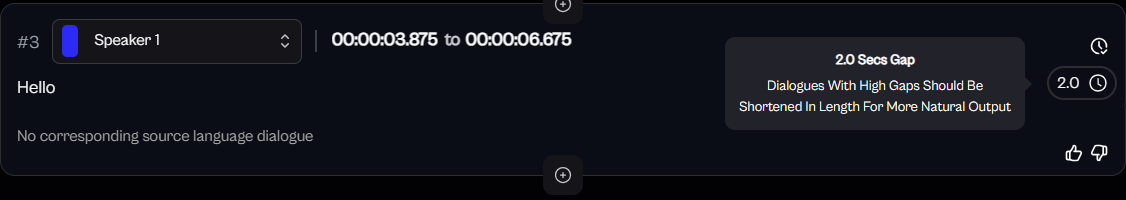 Split Dialogues: If the speaker pauses mid-sentence, divide the dialogue into smaller segments. This can be done in Source Script (before translation) or in target script as you prefer. Ensure the first segment ends where the speaker pauses, and the next segments begins when they resume.