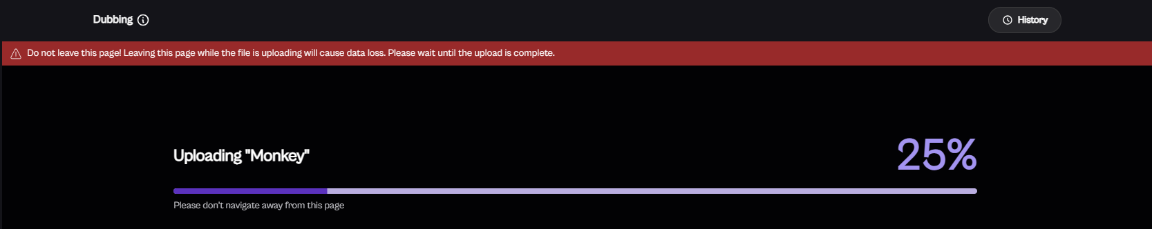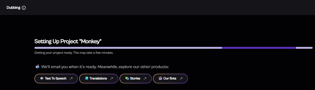 Now, click on "Begin Dubbing" to start the dubbing process. Processing will begin, so please stay on the same page till file Upload is complete .