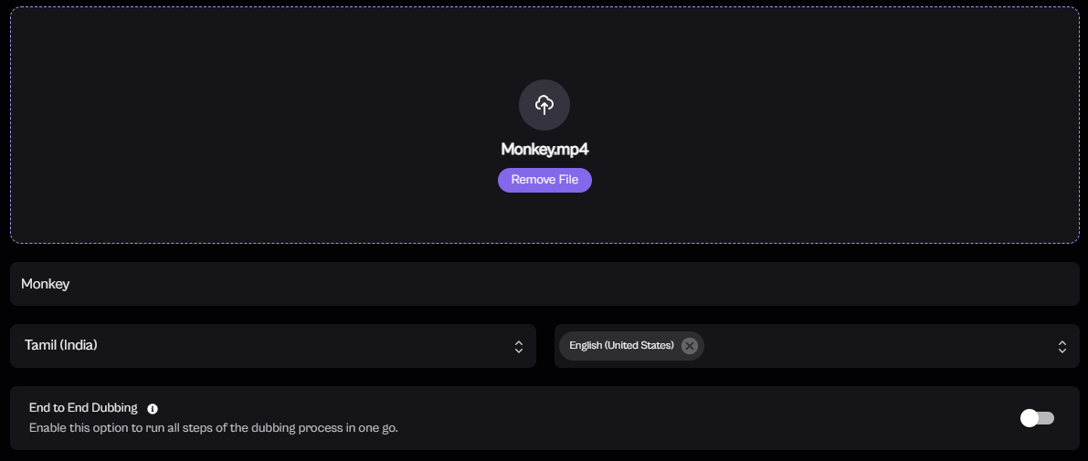 Turn on the toggle if you want the system to automatically run all steps of the dubbing process in one go.