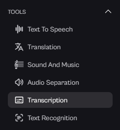 Select "Transcription": In the Tools section, click on the "Transcription" option. This will take you to the transcription page