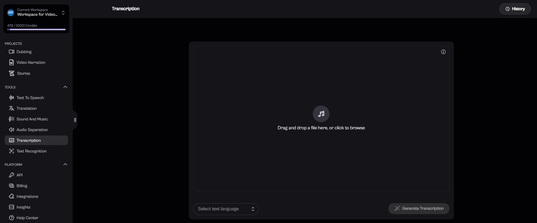 Click "Generate Transcription": Once your file is uploaded and the language is selected, click the "Generate Transcription" button.