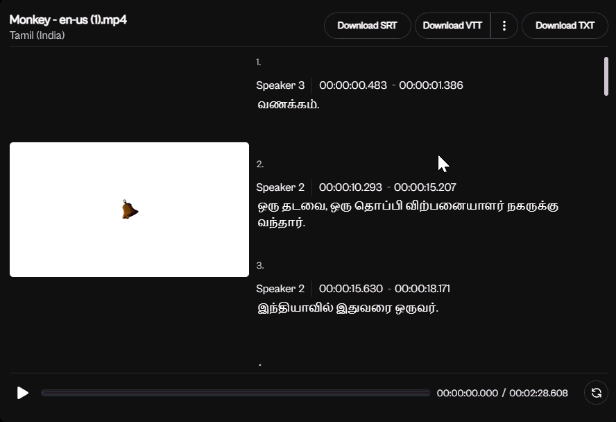 Download Your Desired Format: After the transcription is generated, you can choose to download it in the format you prefer—.srt, .vtt, or txt Select the format that best suits your needs.