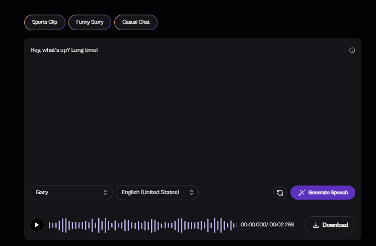 Once the audio is generated, you can listen to it and download the output by clicking on "Download".