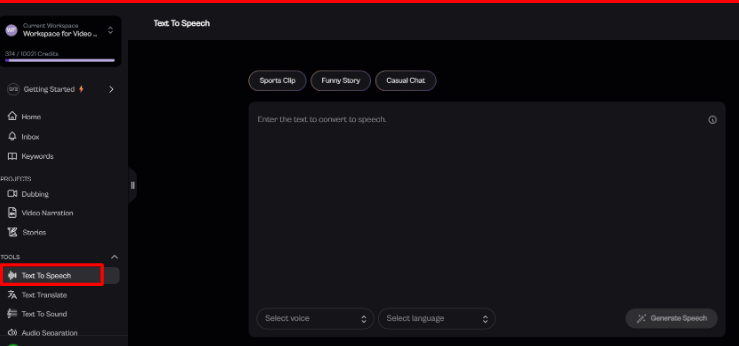 You enter or upload the text you want to convert to speech.