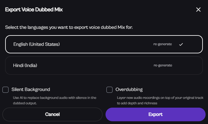 Select the 'Target Language' and click on 'Generate Final Mix'.