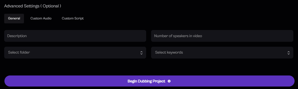 Note: Each toggle enables a specific audio customization mode. You can enable one or multiple depending on your dubbing needs.
