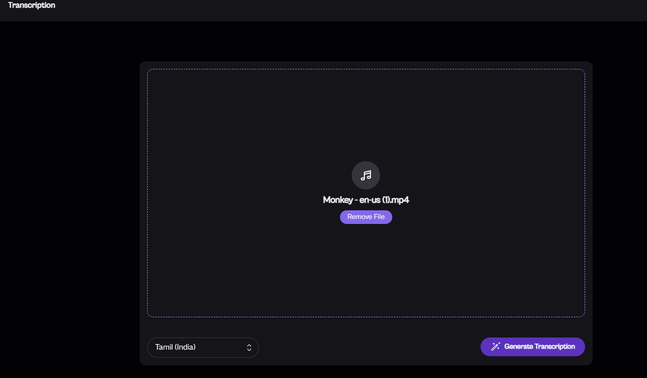 Click "Generate Transcription": Once your file is uploaded and the language is selected, click the "Generate Transcription" button.